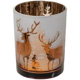 Musta metallinen kynttilälyhty jossa kullanvärinen sisäosa. Koko 8 x 8 x 10 cm.