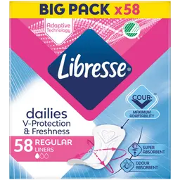 Erikoispitkä hengittävä pikkuhousunsuoja, jonka ydin imee nesteen nopeasti. Käytä pikkuhousunsuojaa lisäsuojana tamponin käytön yhteydessä tai…