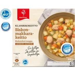 Poista kannet. Kuumenna mikrossa (750W) noin 2-3 minuuttia. Lisää kannen sisältö lämmitetyn keiton pinnalle.