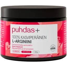 L-Arginiini on aminohappo, joka edistää elimistön typpihapon tuotantoa. Puhdas+ L-arginiini on 100 % kasviperäinen.
