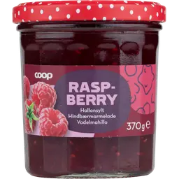 AINESOSAT: Ruokosokeri*, vadelma* (EU ja muu kuin EU), sitruunatäysmehutiiviste*, hyytelöimisaine (E 440). *Luomu. 100 g tuotetta sisältää 50 g marjoja.