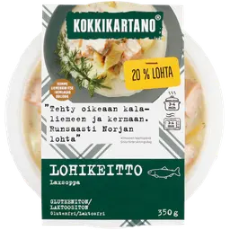 kypsä riisi, kastike (vesi, laktoositon KERMA, laktoositon VOI, rypsiöljy, sokeri, sitruunamehu, rapsiöljy, muunnettu tärkkelys, jodioitu suola, persilja, mausteet (mm. kurkuma, paprika, chili, kaneli, cayenne, korianteri, juustokumina, sipuli, valkosipuli), tomaattipyree, emulgointiaine (auringonkukkalesitiini), suola, maissitärkkelys, väkiviinaetikka, kookoshiutale, aromi, sitruskuitu, väri (paprikauute)), broilerinliha 14 % (suomalainen broilerinliha, rypsiöljy, vesi, suola), porkkana, SOIJAPAPU, bambu.