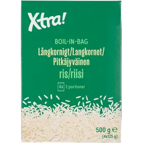 Xtra rice long grain boil-in-bag 4x125g 500 g eUusi1,39 €2,78 €/kgVertailuhinta 2,78 €/kgPoista yksi kappale ostoskorista, Xtra rice long grain boil-in-bag 4x125g 500 g e,lopullinen määrä: 0 kappaletta0 kappaletta ostoskorissa0 kplLisää yksi kappale ostoskoriin, Xtra rice long grain boil-in-bag 4x125g 500 g e, lopullinen määrä: yksi kappaleLisää suosikkeihin, Xtra rice long grain boil-in-bag 4x125g 500 g e